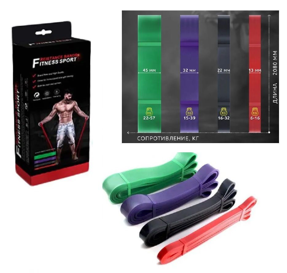 Эспандер резина толстая, набор 4шт в кор