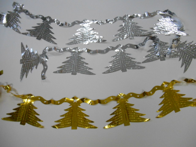 Гирлянда ёлочки зелёные, серебро,золото