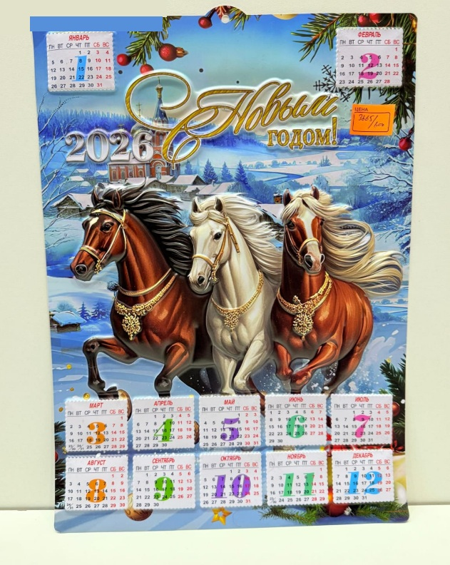 Календарь Лошадка 34*42см , тонкий пластик, 4в