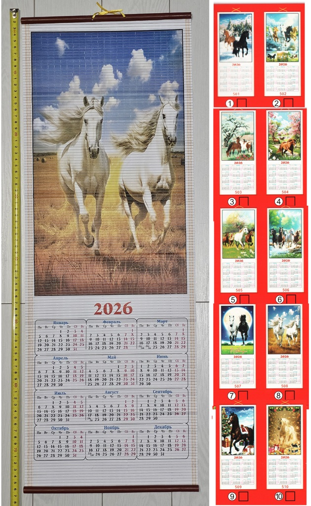 Календарь Лошадка, в рулоне, 32*76см, бамбук, 20видов