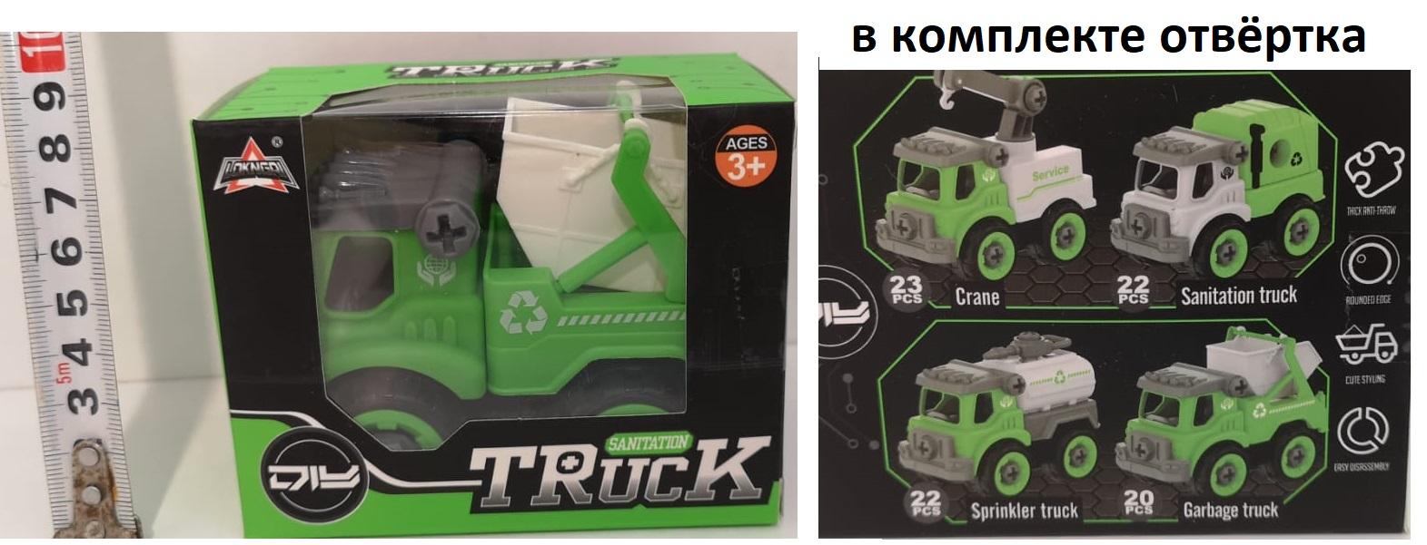 Машина 023 A конструктор, коммунальная, 4в, в коробке