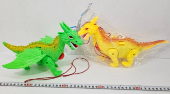 Дракон 30см на бат, св, зв, цвет микс,в пакете